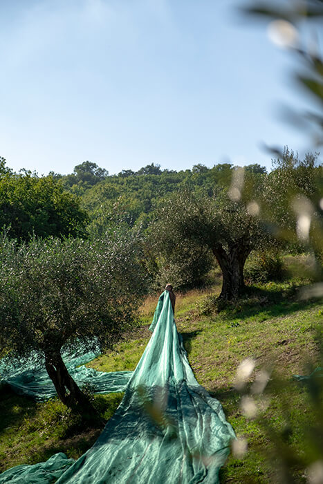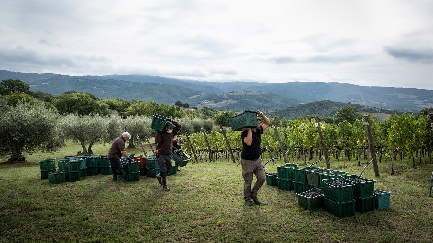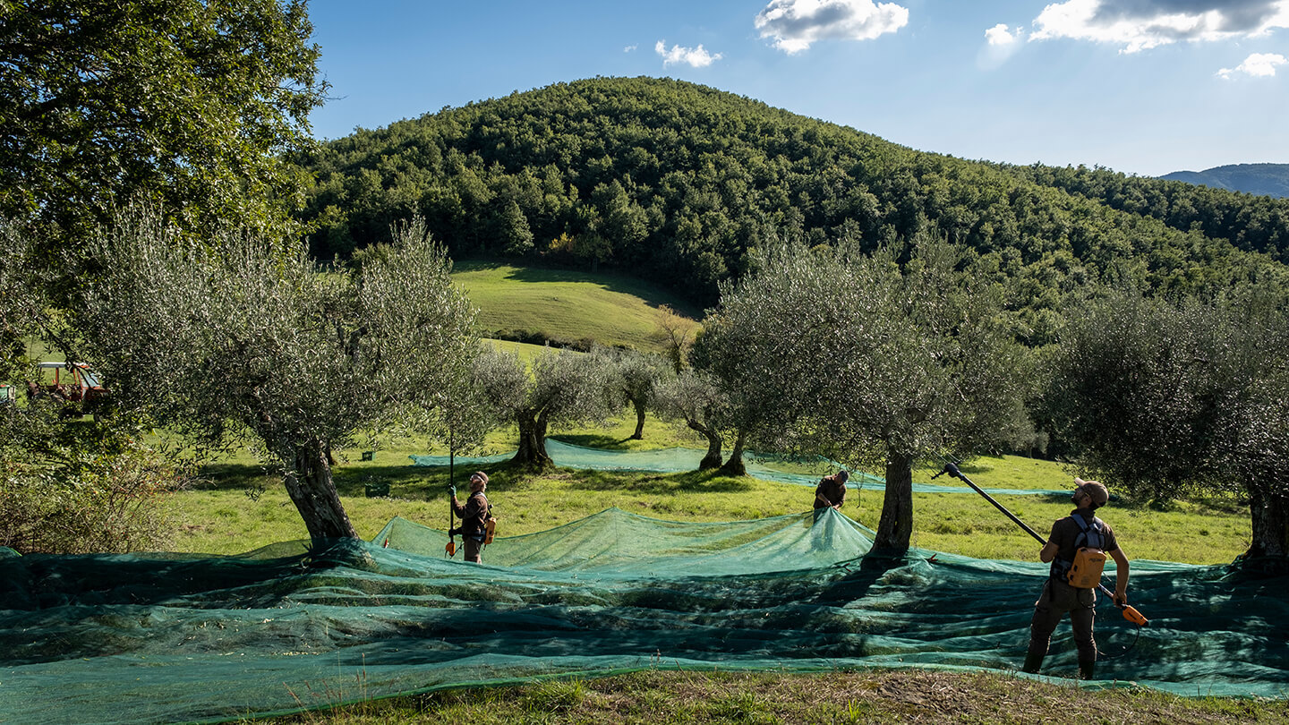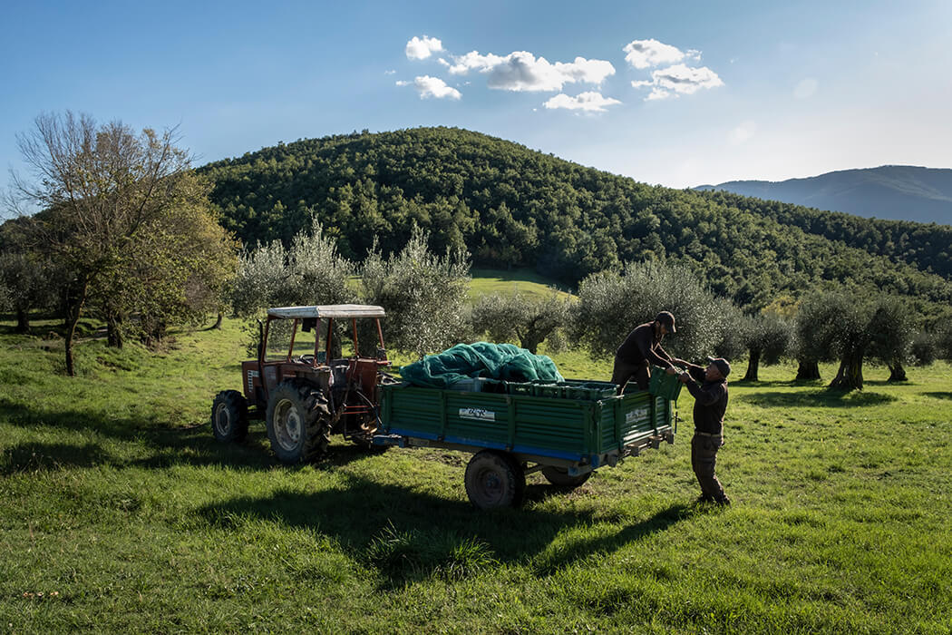 Historically, the Reschio Estate had been farmed by hand along terraces immediately surrounding the fifty farmhouses. Tobacco was cultivated, some food crops, olive groves and, mulberry trees to feed the silk worms resident in the castle and a few head of cattle. When the land was abandoned in the late 1970’s, it was left fallow until the Bolza family acquired the Estate in 1994. It was important that the agriculture chosen reflected the family’s ethos of conserving and preserving the land, letting progress evolve in an organic way and always in ways that would complete the circle. Nearly three decades on, we grow all the grain required for the horses’ feed, sufficient hay for their, and our chickens’ needs. The vines and olive groves are managed efficiently and we make and bottle wines for our own Estate label as well as for some of our House owners. We grow wheat which is taken to a nearby water mill and the flour returned in great sacks for use in Reschio’s restaurant kitchens. It is important to us to reduce the food kilometres, growing ingredients and buying from our near neighbours. It tastes better and just makes better sense
