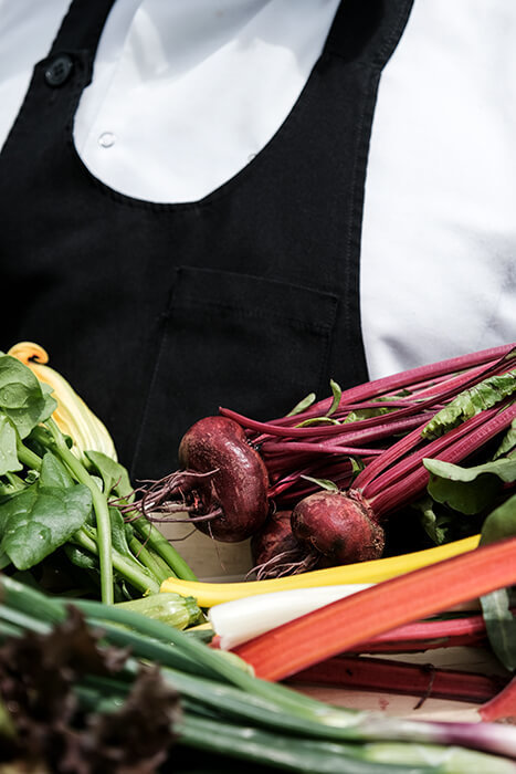 The sheer joy of meadering through our kitchen garden with its abundance of colour and texture, must have a health benefit. Many of the varieties grown are historic or unusual providing seeds that are replanted in subsequent years Flowers, herbs and vegetables are mixed together, each benefitting the other and when they fruit, our chefs are seen amongst the foliage choosing the tastiest produce for their seasonal recipes