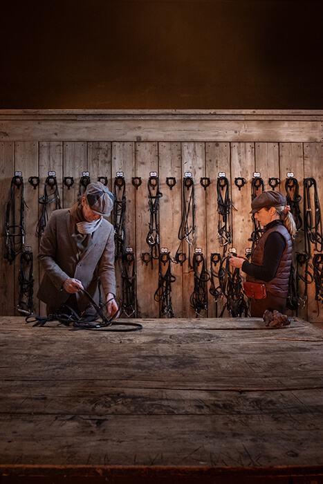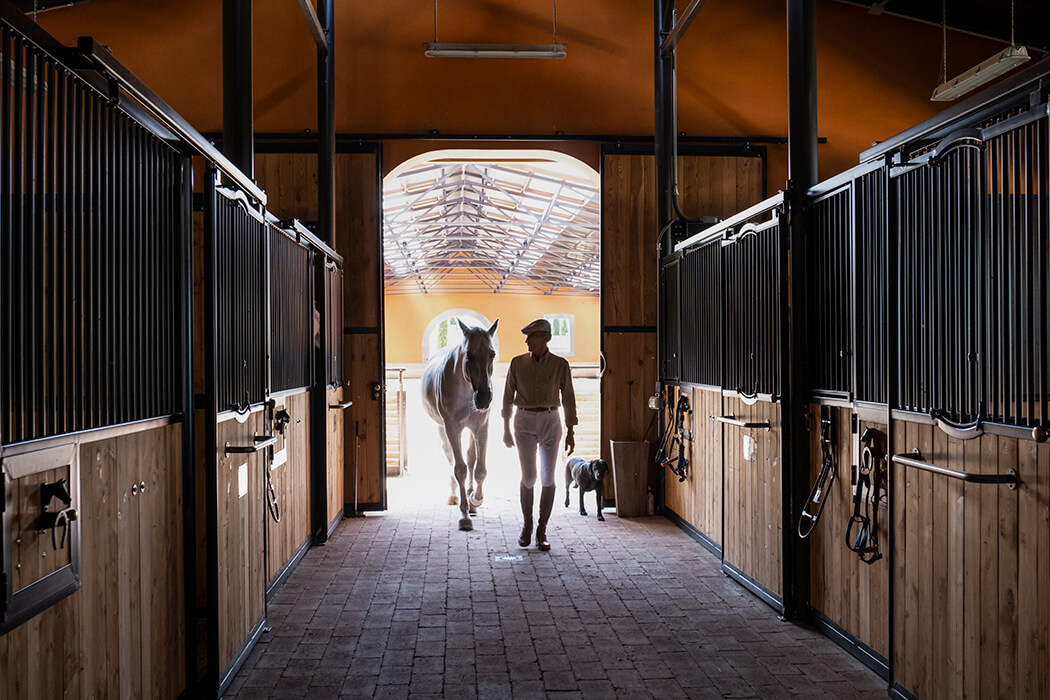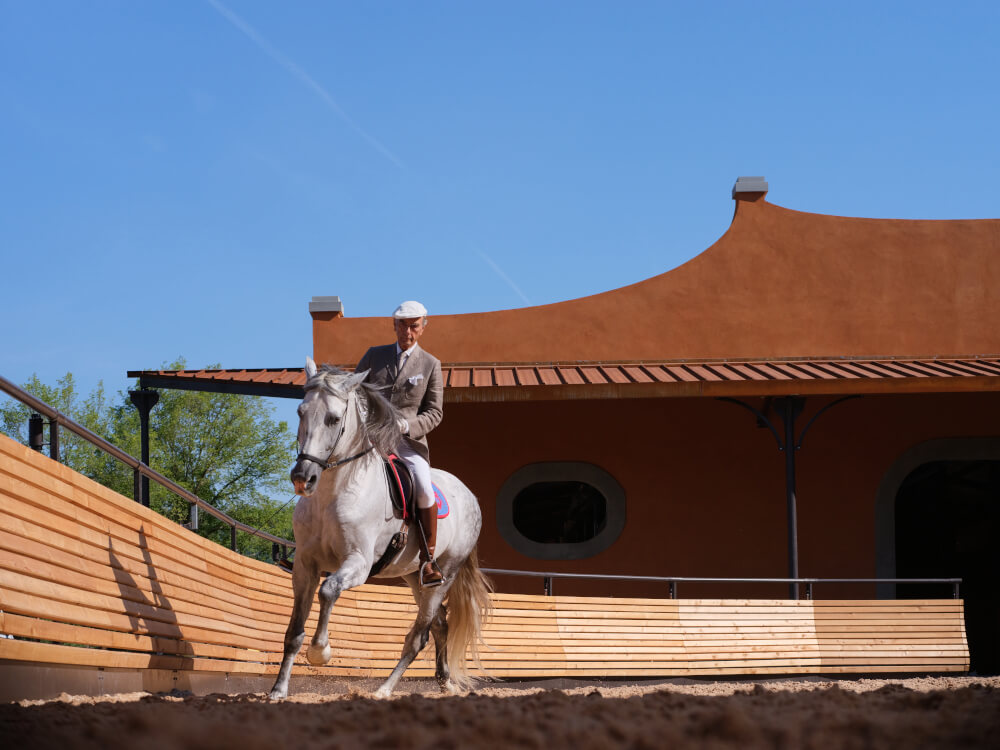 Our trainer, Antonello Radicchi, is a true master of his craft, having devised a unique approach to horse training. His deep understanding of behaviour and psychology uses a gently coaxing method – never using force – to carry out extraordinary manoeuvres. Watching Antonello and his wife Francesca during one of their weekly horse training sessions offers a fascinating, behind-the-scenes glimpse into the discipline and harmony that underpin the art of dressage